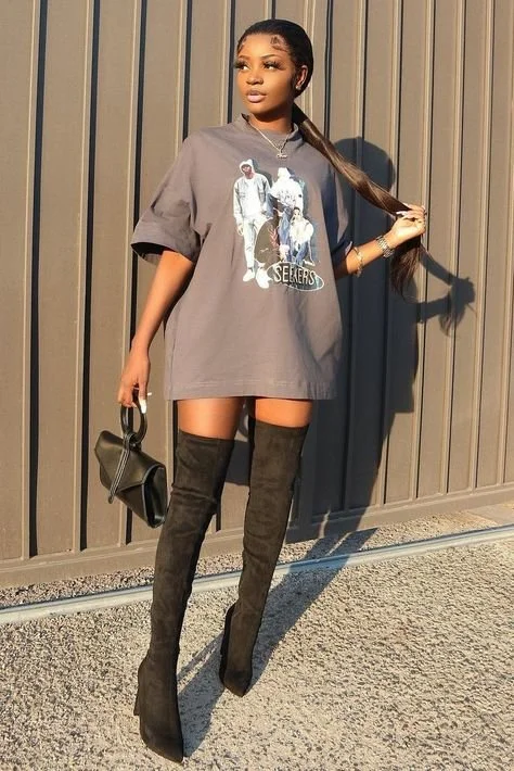 Llevar botas altas con vestidos o faldas cortas dan la ilusión de piernas mas largas.