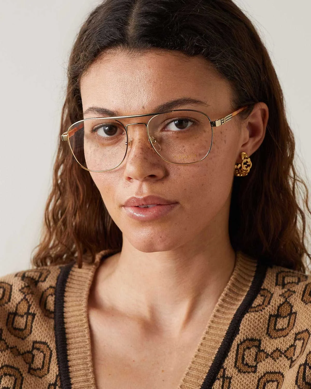 Si quieres alejarte de la norma, las monturas geométricas son una excelente opción para rostros alargados. En lugar de los típicos bordes redondos o cuadrados, las gafas geométricas utilizan formas hexagonales para una apariencia vanguardista y armoniosa.