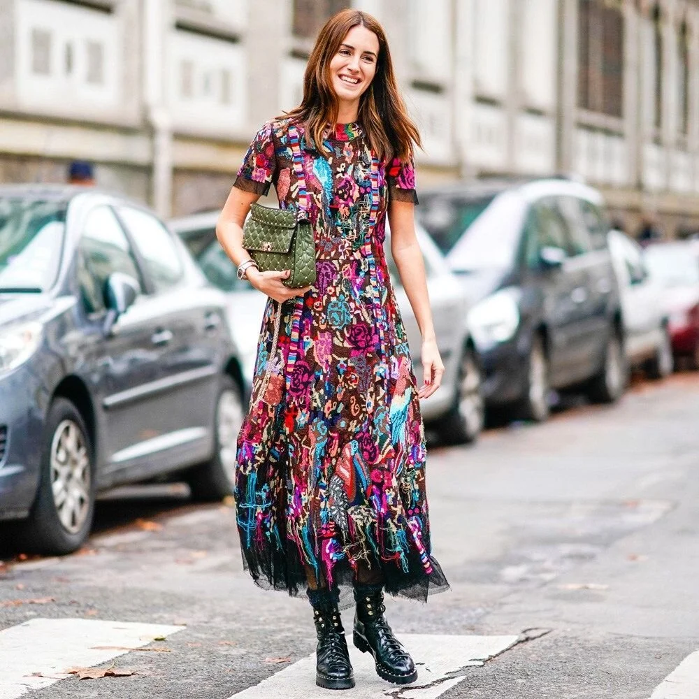 Atrévete a llevar tus combat boots con vestidos románticos. La mezcla de estilos te permite lograr un look fresco y moderno.