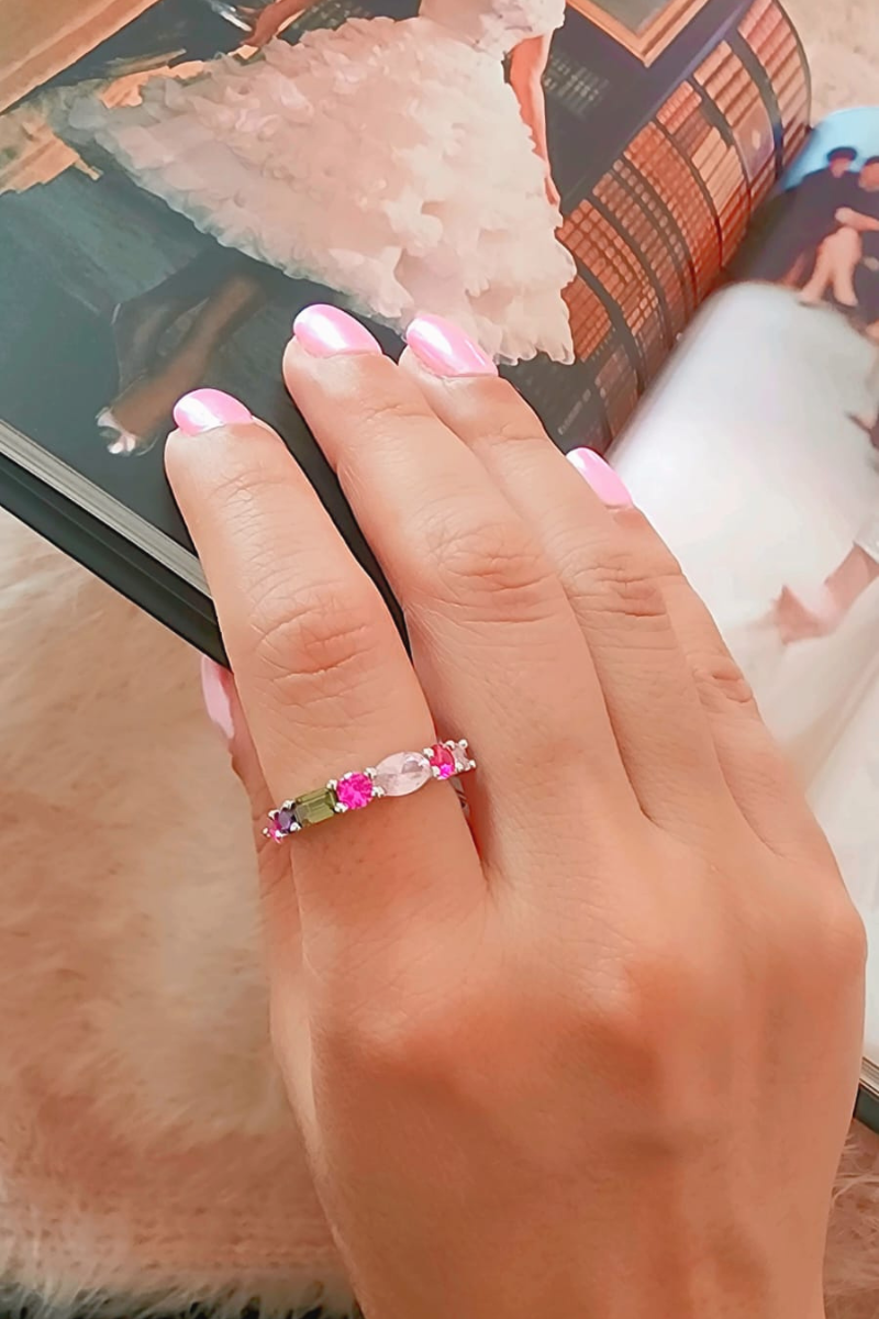 Anillo de Cristal Multicolor: Este anillo es una explosión de color y brillo. Los cristales multicolores capturan la luz de manera fascinante, haciendo de este anillo una pieza central llamativa para cualquier ocasión. Como apasionada del color, se ha vuelto una pieza imprescindible en mis looks diarios.