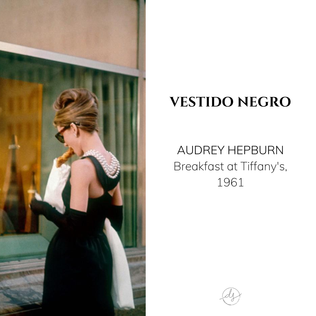 Si bien es cierto que Coco Chanel fue quien creo el vestido negro, fue Audrey Hepburn en “Breakfast at Tiffany’s” del año 1961 quien lo popularizo. Este vestido se mantiene al dia de hoy como un basico del closet y un simbolo de elegancia.