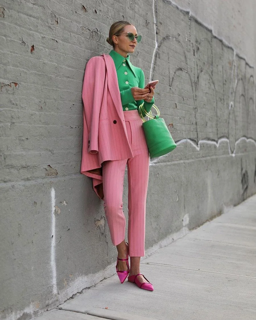 Entre el kelly green, el lima y esmeralda, el color verde esta teniendo su momento. En los últimos meses ha llegado una nueva combinación al street style, el verde y rosa.