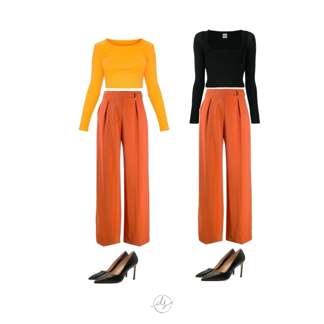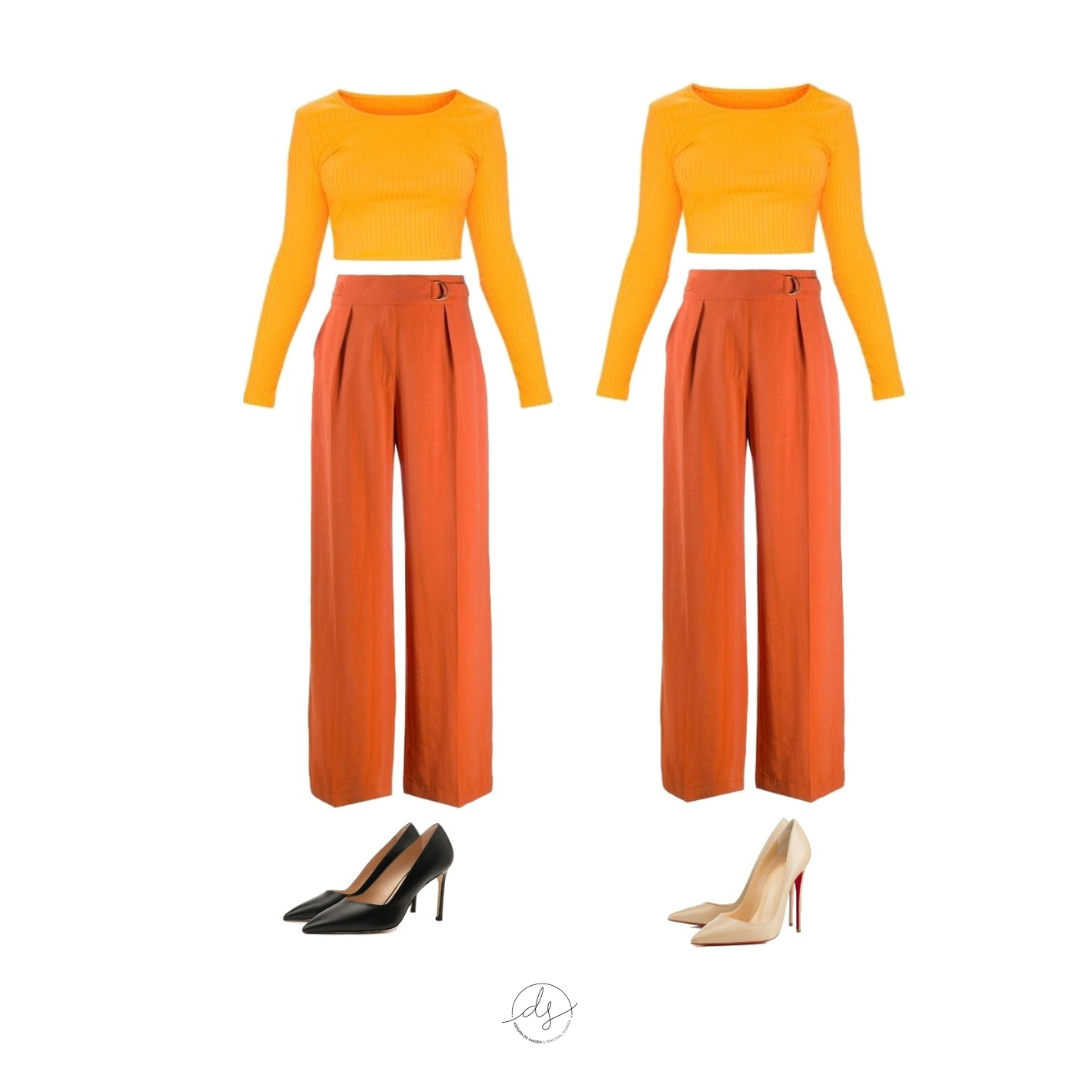 Si quieres utilizar 2 colores o mas en tu outfit, opta por zapatos nudes o claros, si combinas con zapatos negros tu look se vera muy pesado.