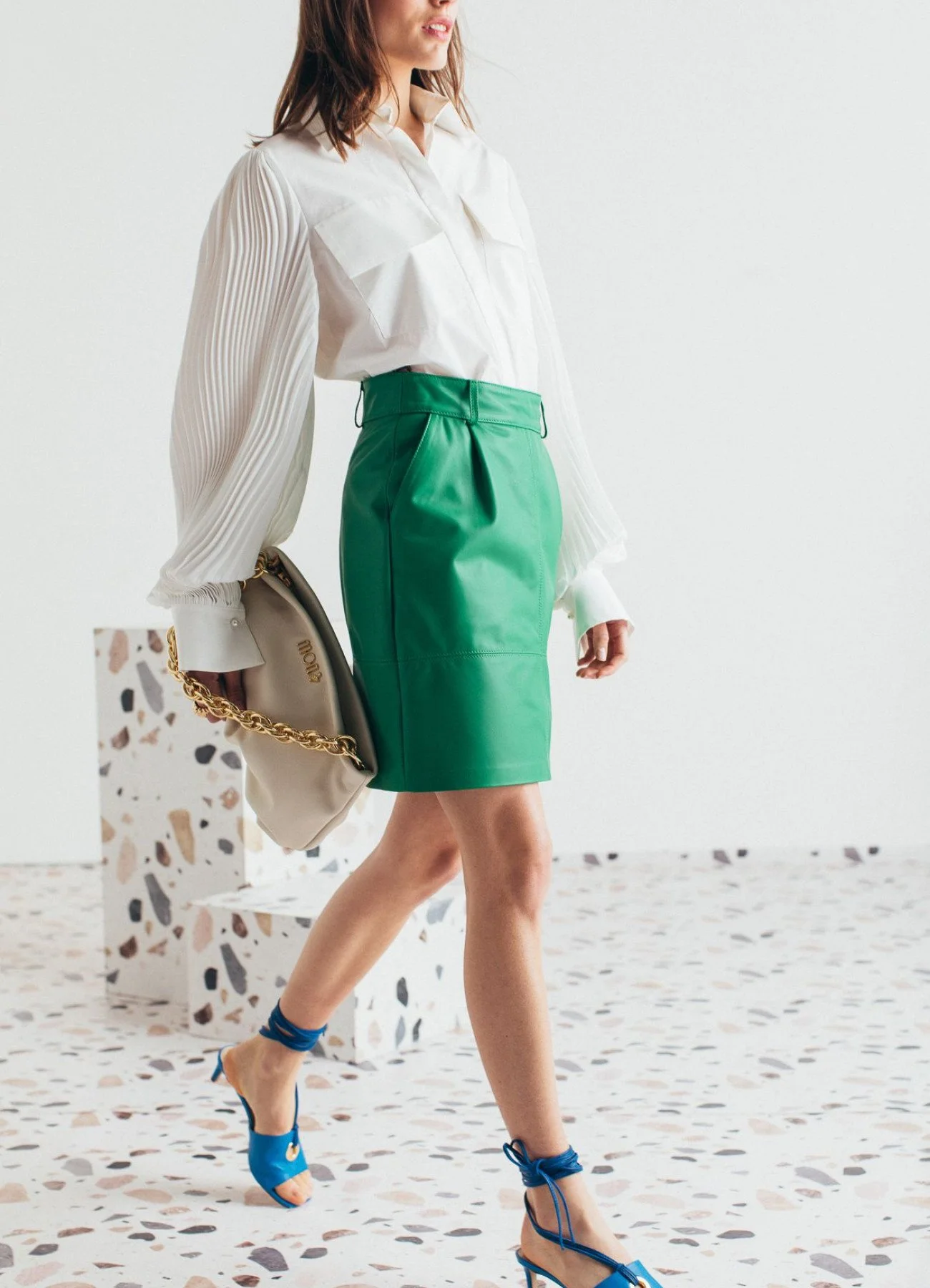 Una falda verde que destaque lo mejor de ti, te ayudara a crear infinidad de looks. Puedes probar un estilo relajado combinando una camiseta de tirantes y zapatos cómodos, la falda pasara a ser el punto focal de tu outfit.