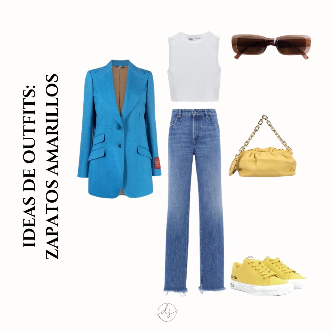 Para elevar hasta el mas básico de los looks lo único que necesitas es un accesorio con un pop de color y los zapatos amarillos son una excelente opción.