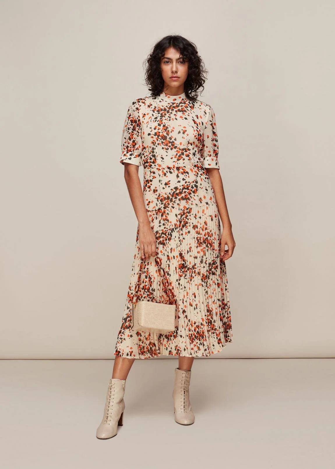 Los vestidos florales son otra excelente opción para San Valentín, combínalos con bolsos o zapatos statement para un look moderno.