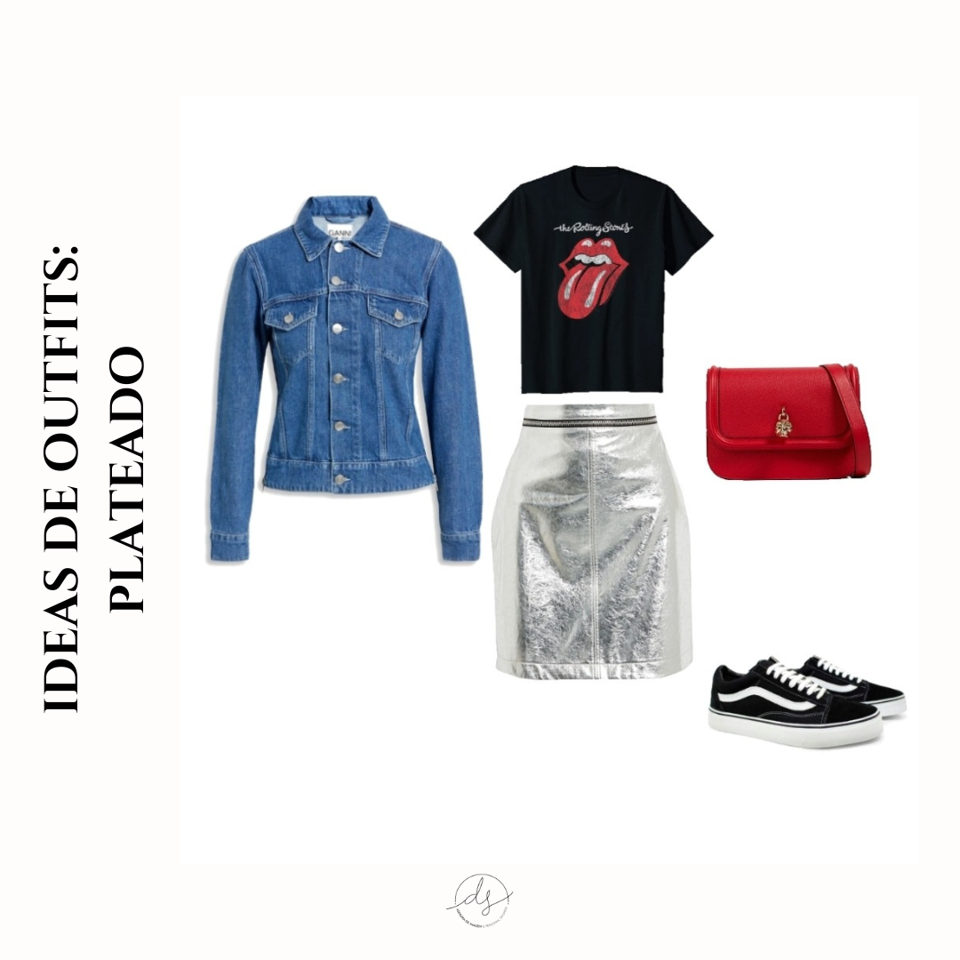 El plateado tambien luce muy bien al combinar con tonos saturados, crearas un buen contraste y sera funcional para llevar tanto de dia como de noche.