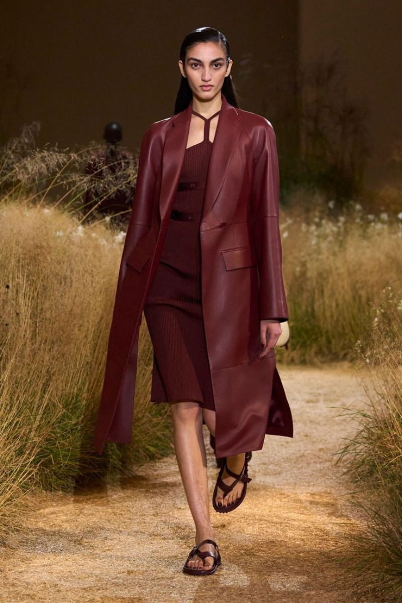 Este elegante color ha sido protagonista en las pasarelas de reconocidas casas de moda como Gucci, Tom Ford, Bottega Veneta y Hermès. De hecho, Hermès presentó una colección prácticamente dominada por esta rica tonalidad, demostrando su poder y versatilidad en el mundo de la alta costura.