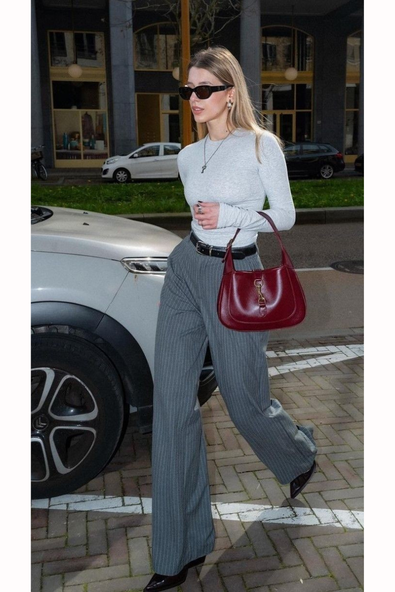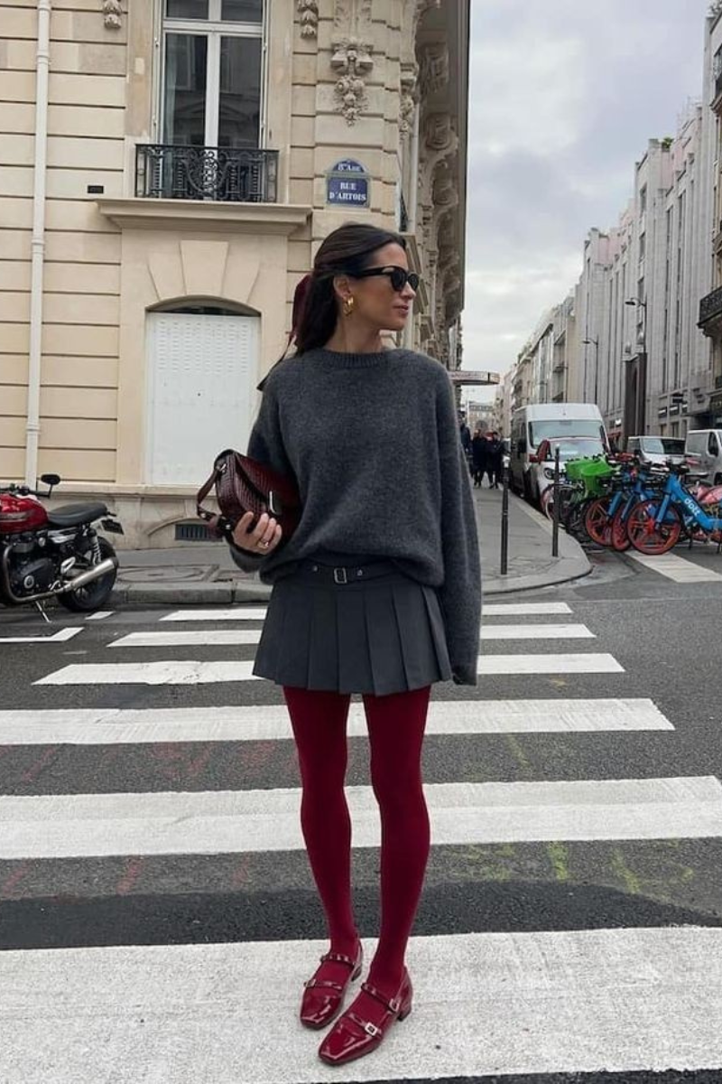 En el street style, la combinación más destacada del Burgundy ha sido con gris. Este emparejamiento aporta un aspecto mucho más elegante y clásico, ideal para quienes buscan una apariencia sofisticada sin sacrificar la modernidad. El contraste entre el profundo Burgundy y el neutro gris crea un balance perfecto, realzando la belleza de ambos colores y ofreciendo una estética atemporal.