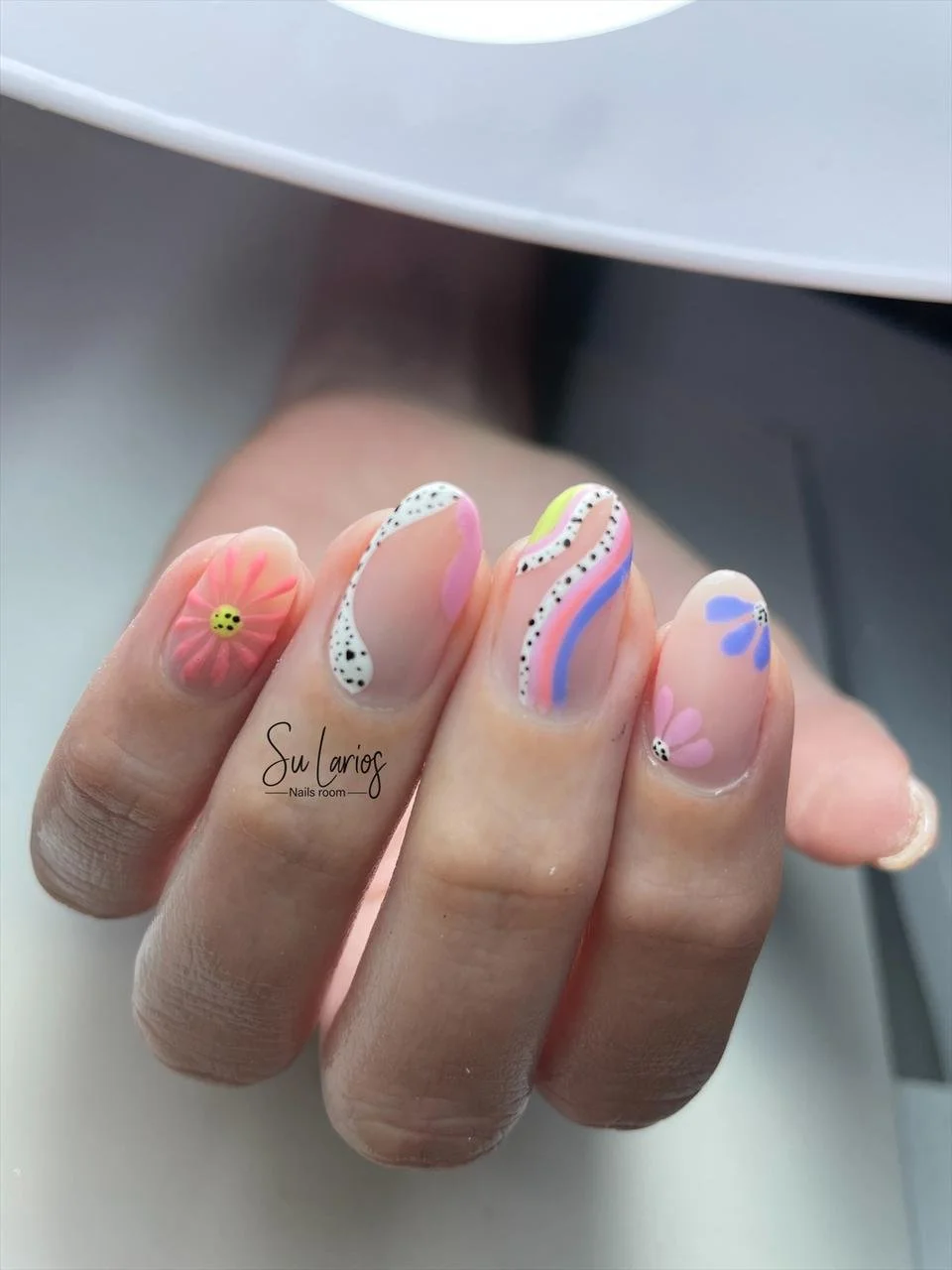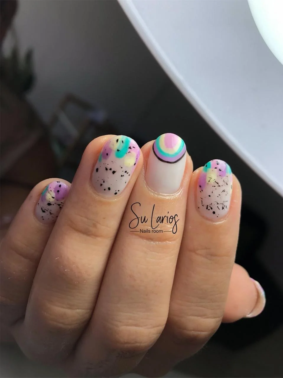 Las uñas multicolor también estarán presentes este año. Desde tonos pastel, neutros o neones.