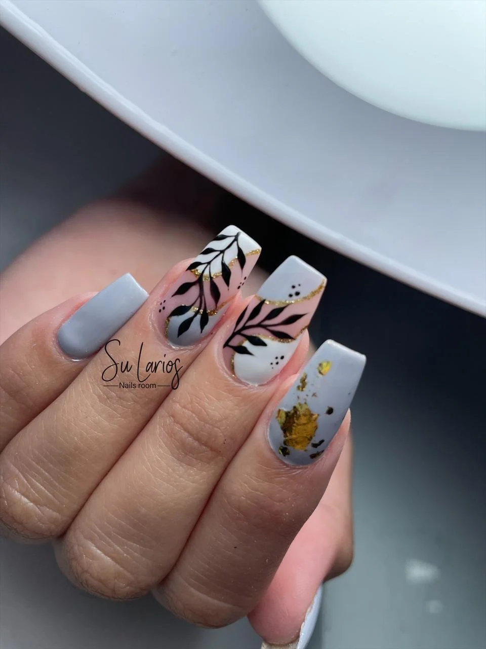 Las texturas también estarán presentes. Puedes jugar con el acabado mate, relieves, texturas con brillo e incluso, toques con hoja de oro para ganar el intento al probar este manicure.