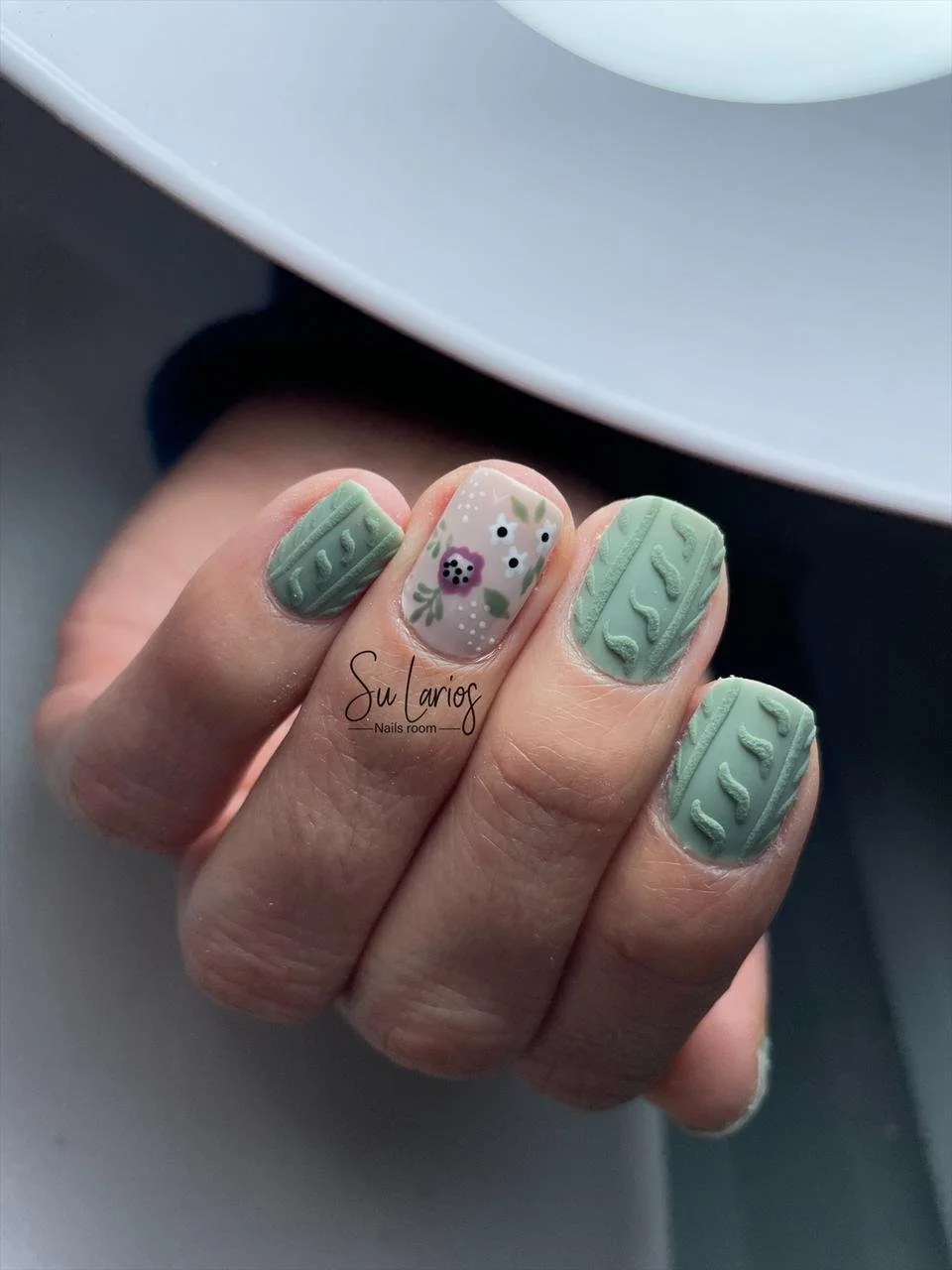 El verde que tanto ha estado en tendencia también llega a las uñas, lo veras en todas sus tonalidades. Uno de los favoritos son los verdes terrosos.